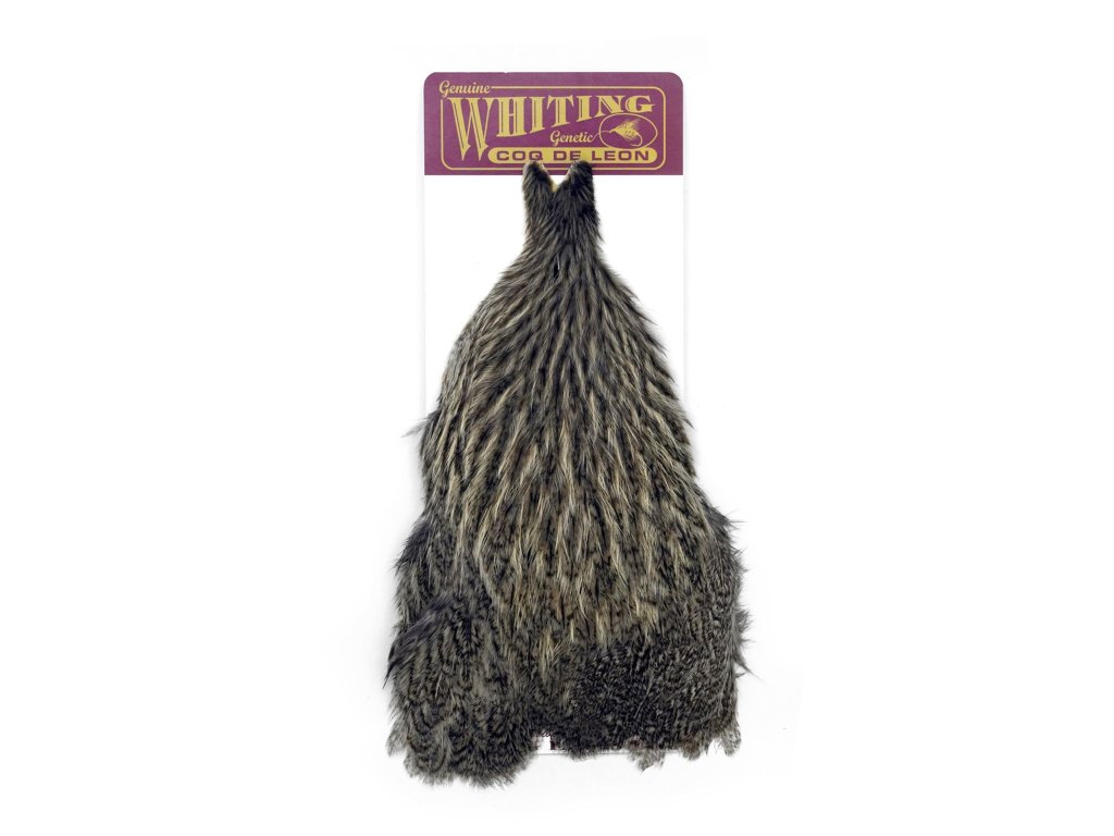 Whiting Coq de Leon Hen Cape v odtieni Natural Speckled ponúka prvotriedne jemné a pavučinkové perie s krásnym hnedým mramorovaním. Tento materiál je ideálny na golieriky, nohy nýmf, puzdrá krídiel a väčšie soft hackle vzory, čím dodáva mušiam prirodzený a realistický vzhľad.